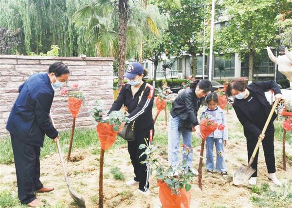 本报讯 (记者 张劲松 文/图) 5月16日,随着数百株高杆月季的种植,市城乡一体化示范区文昌办事处中原社区又添新绿。连日来,随着文昌办事处“毁绿种菜”及“裸土植绿”专项整治行动的开展,规范化、高品位植绿理念逐步深入人心,中原社区公共绿地也在悄然发生着变化。