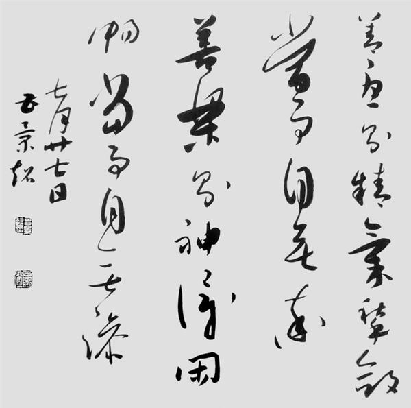 因此,观曹景超的行草,我们除感受到其作品形式的冲击力之外,还可以感受到书法线条背后曹景超的精神和灵魂:真诚、朴实、儒雅和名士风度。