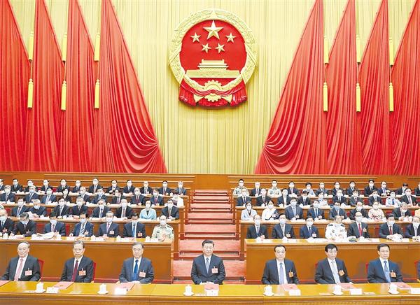 习近平、李克强、汪洋、王沪宁、赵乐际、韩正、王岐山和大会主席团成员在主席台就座。
