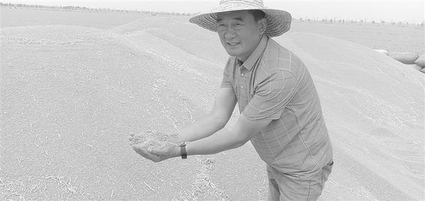 5月31日,商水县张庄乡种粮大户邱守先看着金灿灿的麦子,脸上洋溢着丰收的喜悦(上图)。邱守先种了2100亩优质小麦,经过科学管理,今年获得亩产1300元的好收成。乔连军 摄