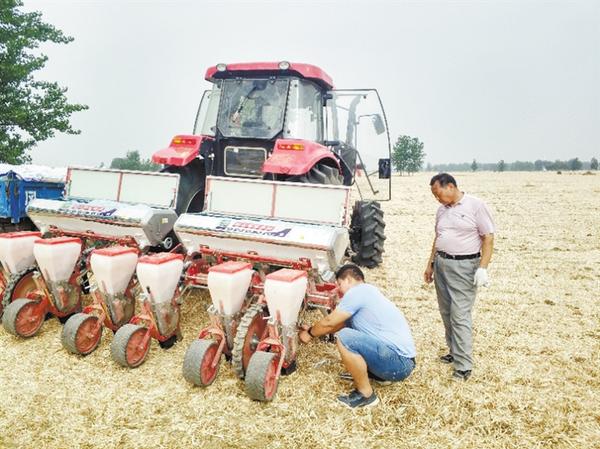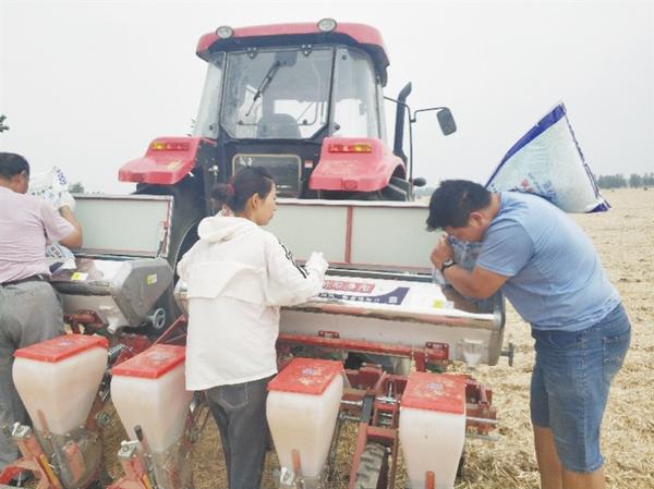 6月9日,沈丘县石槽集乡王湖行政村小锋专业种植合作社正使用大型农机开展玉米播种作业。近日,该县抓住有利天气时机,全力做好玉米播种等工作,为秋粮增收打下坚实基础。