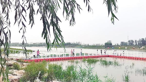 人民满意,就从贾鲁河生态滨河公园亲水平台说起,它三面环水,平时游人可以在上面驻足休息、垂钓、戏水游玩。平台下面是自然生态湿地,下游3公里处的安康大道节制闸蓄水后河道水面宽度将达到250-300米,水面面积达100多万平方米,河道主河槽水深可达2.8米,浅滩区水深0.7米。