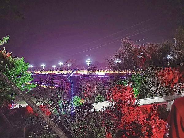 贾鲁河生态滨河公园一期铺装广场、步道1.3万平方米,安装各式造型唯美的堤顶路灯、园路路灯、草坪灯、庭院灯、地灯、树灯等照明灯具1200个,中华路桥两侧安装大功率景观射灯4盏、中华灯12盏、80个栏杆帽灯和灯带240米。