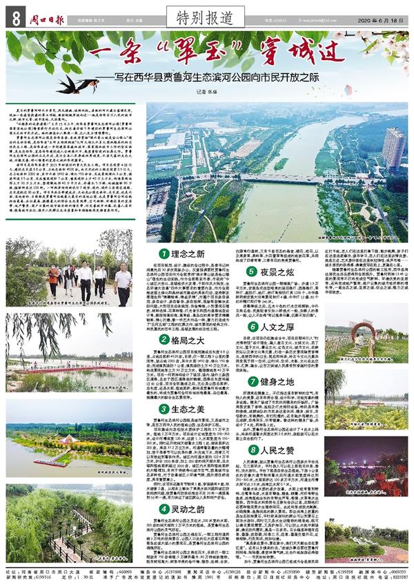 随着贾鲁河生态滨河公园的竣工投用,西华县周边居民生活品质得到全面提升,贾鲁河两岸13.48公里的景观带不仅将变成空气新鲜、环境优美的宜居带,还将变成地产繁荣、商户云集的城市经济新的增长带,一座生态之城、宜居之城、创业之城、魅力之城华丽绽放。