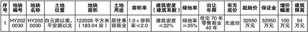 备注:1.具体建设方案须报规划部门批准后实施,土地出让合同签订后,12个月内必须开工建设,工期30个月,土地成交价款需在土地出让合同签订后60日内交清,交地时间6个月内。2.根据淮政【2019】45号文件精神,HY2020030竞得人需在淮阳区注册新公司或设立子公司。3.土地竞买保证金必须以竞买申请人(单位)自身的名义交纳,竞买申请人(单位)与交款人(单位)名称不一致的,无法确认其竞买资格,交纳款项无效。4.具体以规划部门出具的规划指标为准。