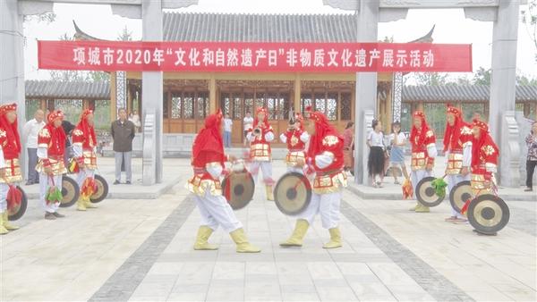 6月13日,项城市在张伯驹公园举行2020年“文化和自然遗产日”非物质文化展示活动,庆祝第15个全国“文化和自然遗产日”。据了解,今年的活动主题是“非遗传承 健康生活”。活动现场,国家级非遗项目“官会响锣”等节目精彩上演,为市民送上了一道精美的“文化大餐”。记者 杨光林 摄