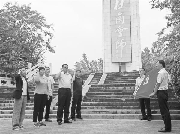 为庆祝中国共产党成立99周年,进一步增强广大党员的使命感、责任感,近日,农行周口分行开展迎“七一”主题党日活动,重温党的光辉历程,接受思想教育,汲取精神力量,进一步激发党组织活力,继承发扬党的优良传统,提振全体党员精气神。图为农行周口分行干部员工在杜岗会师纪念碑前重温入党誓词。