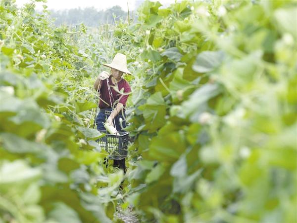 6月22日,沈丘县卞路口乡的一个蔬菜种植基地里,瓠瓜长势喜人,农民正忙着采摘。近年来,该县不断调整农业种植结构,引导、扶持农民大力发展蔬菜种植,让越来越多的农民依靠“菜篮子”鼓起“钱袋子”。