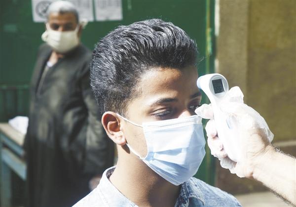 6月21日,考生在埃及首都开罗的一处考场接受体温检测。