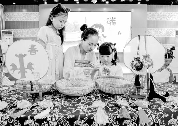6月23日,长兴县李家巷镇中心幼儿园的孩子们在老师的带领下,一起制作端午香囊。为了迎接即将到来的端午节,浙江省湖州市长兴县各个幼儿园开展“品民俗 迎端午”主题活动,让小朋友们体验传统民俗文化。新华社发