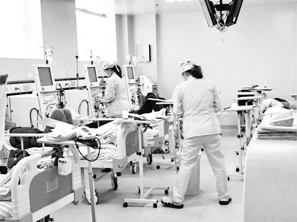 6月的一天,按照约定,记者在中心城区某医院透析大厅见到了王强。王强安静地躺在病床上,一根直径不到1厘米的“体外血管”连接在被尿毒症患者戏称为“外挂肾”的血液透析机上,通过透析机进行弥散和滤过后,血液再输回患者体内。