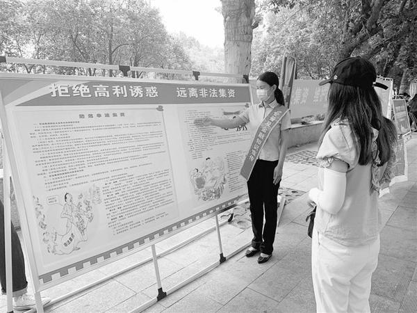 本报讯 (记者 韩志刚 通讯员 郭哲一 文/图) 近日,邮储银行周口市分行在五一广场开展了防范非法集资集中宣传活动。本次活动以“守住钱袋子 保护好幸福家”为主题,揭示了非法集资的特征和危害,教育引导群众自觉远离涉非风险。
