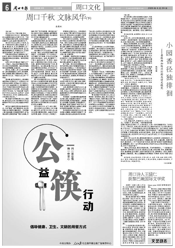 啊!回望中古时期的周口文化,我觉得,谢灵运的山水诗、周兴嗣的《千字文》都堪称中华文化史上难以逾越的并峙双峰。