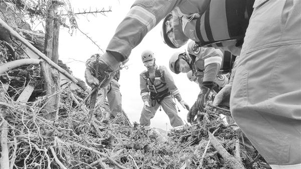 救援队员在冕宁县彝海镇搜救(6月28日摄)。