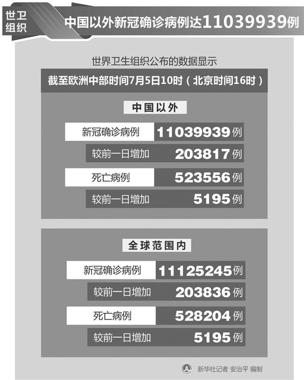 世卫组织:中国以外新冠确诊病例达11039939例