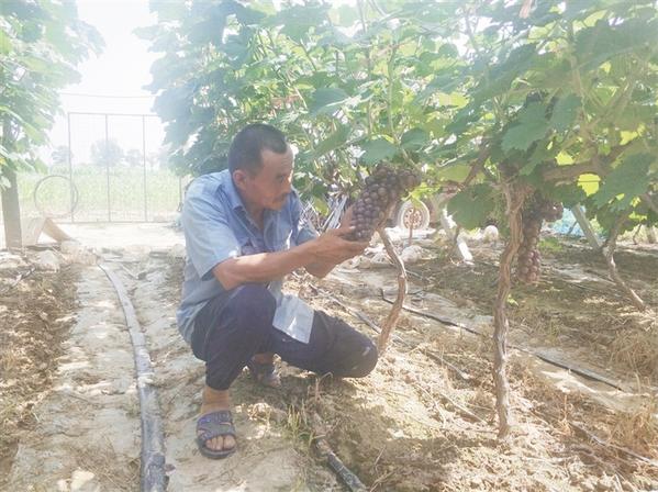 近年来,沈丘县通过发放扶贫小额贷款,鼓励贫困户发展特色种植养殖,拓宽增收渠道,助力脱贫攻坚。在该县石槽集乡杨营村,脱贫群众刘长春靠着5万元贴息贷款,流转了35亩土地,种植了葡萄、芝麻等经济作物,年纯利润近4万元。图为7月6日,刘长春在家庭农场内查看葡萄长势。