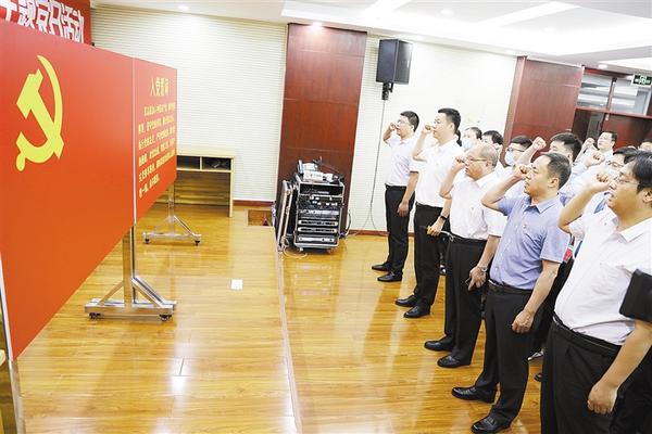 为庆祝中国共产党成立99周年,“七一”前夕,太康农商银行开展了形式多样、内容丰富的党建活动,提升了党员的“精气神”,增强了党员的党性,凝聚了发展力量。图为6月28日,该行党委书记为党员干部上党课时,与会新老党员向党旗庄严宣誓。
