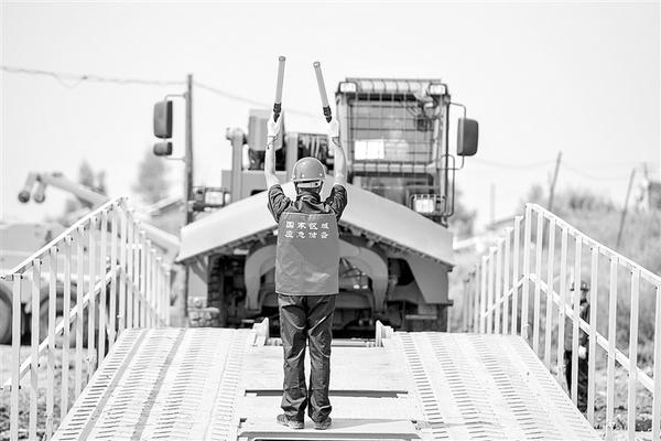 7月10日,工作人员引导多功能应急抢险车安全过桥。 当日,由吉林省交通运输厅主办的公路桥梁水毁抢通应急演练在长春市双阳区双阳河举行,参与演练人员从汛情水毁信息报送、应急装备快速集结、机械化桥梁抢通搭设、善后处理等方面进行实战演练。新华社记者 张楠 摄
