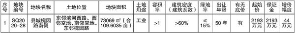 一、拍卖地块的基本情况和规划指标要求(详情见下表)