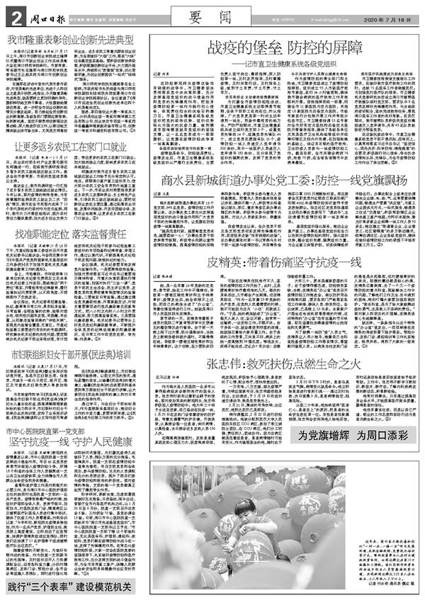 商水县新城街道办事处共有16个党支部、646名党员。疫情防控工作开展以来,该办事处党工委充分发挥基层党组织的战斗堡垒作用和广大党员干部的先锋模范作用,让党旗在防控疫情一线高高飘扬。