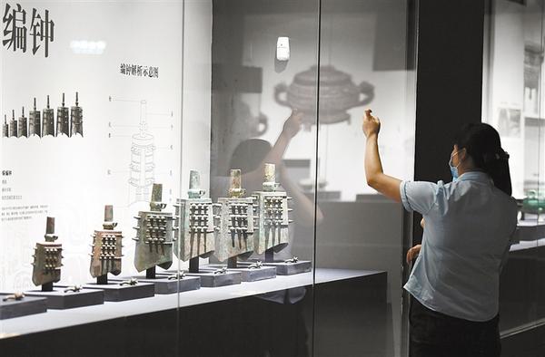 7月17日,观众在陕西历史博物馆参观刘家洼东周遗址出土文物。