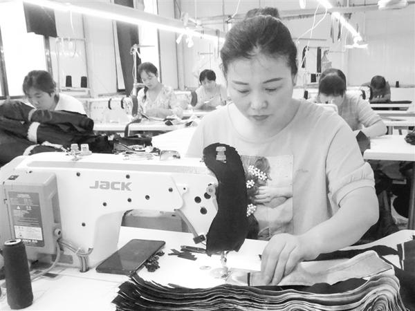 7月19日,沈丘县周营镇马营村一处服装来料加工车间,来自附近村庄的女工们忙着加工订单羽绒服。今年以来,沈丘县纪委监委充分发挥监督保障作用,通过精准监督,推动就业扶贫和“六稳”“六保”工作落细落实,让留守贫困群众在家门口端稳就业“饭碗”,使其持续稳定增收不返贫。记者 孙安平 摄