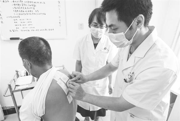 入伏以来,河北省武邑县市民走进医院利用中医疗法进行“冬病夏治”。“冬病夏治”是通过穴位贴敷等中医疗法,对特定慢性病进行的治疗。新华社发