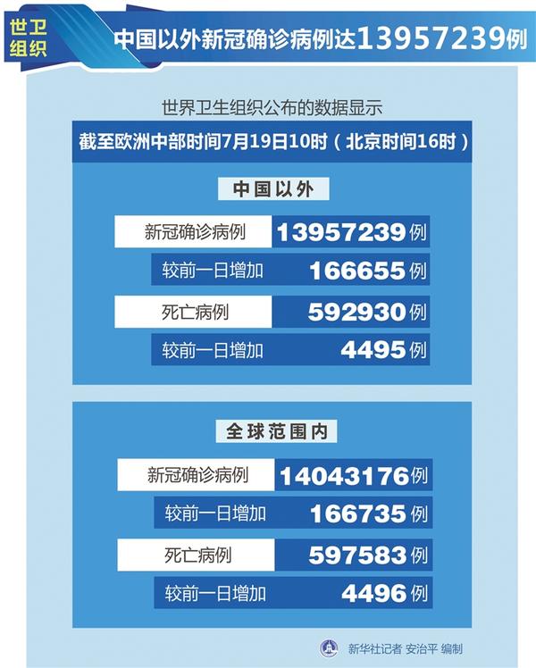 中国以外新冠确诊病例达13957239例