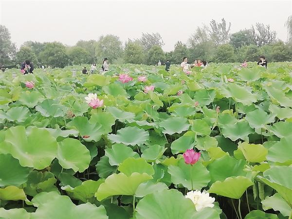 时下,淮阳龙湖荷花苑中的荷花次第开放,吸引众多游客前来赏荷。