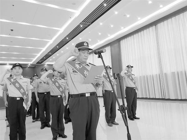 “我是中国人民解放军军人,我宣誓……”7月25日上午,周口军分区举行2020年度转业干部退役仪式,在淮阳县人武部政委张文峰的带领下,7名军转干部最后一次举起右手重温军人誓词,重温入伍时立下的铮铮誓言。记者 陈永团 摄