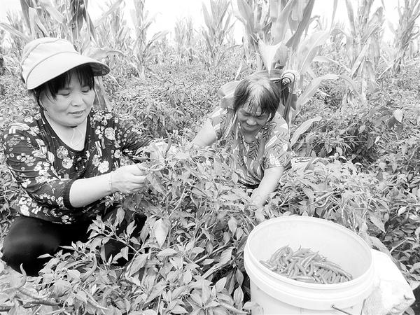 8月6日,在沈丘县周营镇马营村一处订单辣椒种植基地,迎来辣椒采摘丰收季,村民们抓住晴好天气,忙着采摘朝天椒,田间地头一派繁忙景象。近年来,该镇以深化农业供给侧结构性改革为契机,加大农业产业结构调整力度,以“支部+合作社+基地+农户”的模式发展订单辣椒产业,为当地农民开辟了特色农业增收致富路。