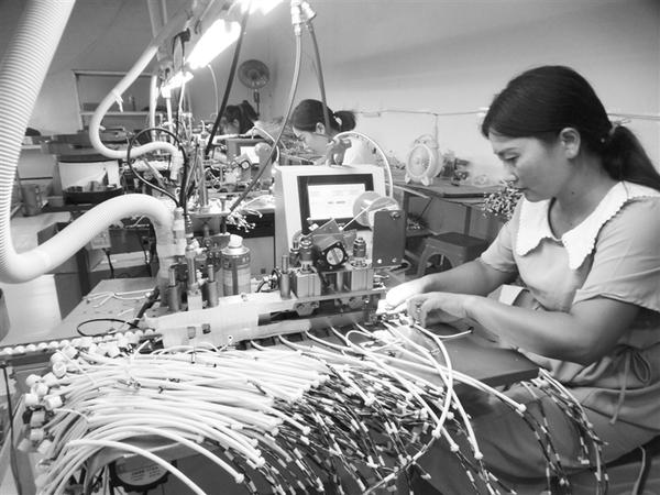 近期以来,沈丘县纪委监委把落实“六稳”“六保”作为政治监督的重要内容,并将监督“镜头”对准县域内的重头项目落地建设和大、中、小微企业或扶贫车间复工复产正常运转,以确保当地群众就近就业,持续稳定增收。图为8月7日,落户在沈丘县周营镇的一家电子组装加工厂,一批留守在家通过短期技能培训的“巧媳妇”们,忙着在生产流水线上组装加工订单电子元件。 谢辛凌 刘润琪 摄