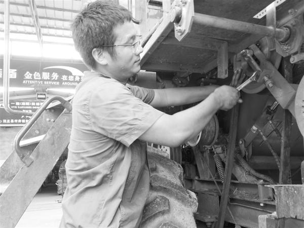 8月10日,沈丘县付井镇某农机合作社技术人员在检修、养护农机具。连日来,该县农机部门充分利用“三秋”前的有利时机,积极组织农机技术人员及农机公司售后服务队,通过送检下乡、集中培训、集中监测等形式,对即将参加“三秋”作业的农机具进行安全检测、维修、养护、安装调试。目前,该县已调试、安装、检修各类农机具26000余台(套),为“三秋”农机化生产安全工作的顺利开展奠定了良好的基础。谢辛凌 摄
