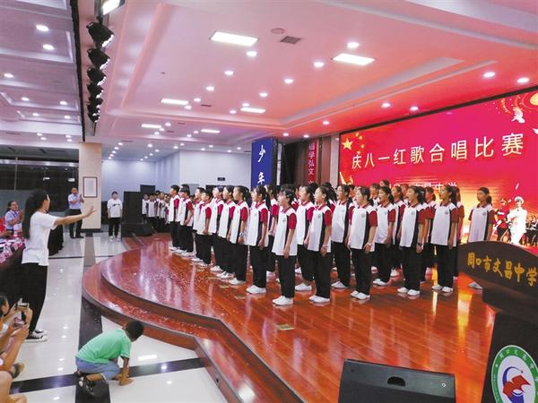 8月7日,周口市文昌中学举办“唱红歌,颂祖国”主题红歌比赛,由校少年班组成的6支参赛队300余名选手登台高歌,用嘹亮的歌声表达了文昌师生深厚的爱国之情,展示了文昌师生昂扬奋进的精神面貌。记者 张劲松 摄