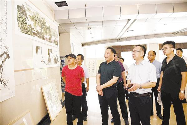 8月12日上午, 庆祝撤地设市20周年和《周口日报》创刊30周年书画作品展在周口报业传媒集团举行。此次书画展不仅作品数量多、品种全,而且作品质量普遍较高。不少作品构思巧妙、布局新颖,具有独特的艺术魅力和强烈的艺术感染力,堪称献给撤地设市20周年和《周口日报》创刊30周年的一份厚礼。图为人们在欣赏书画作品。