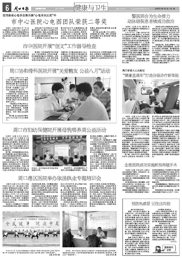 本报讯 (记者 史书杰 孙艳 文/图)为提高广大市民对糖尿病的认识,帮助糖尿病患者合理控制血糖,减少并发症的发生,8月8日,周口协和骨科医院开展“关爱糖友 公益八月”活动,受到市民一致好评。
