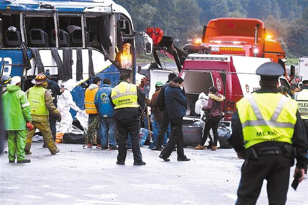 据墨西哥媒体11日报道,墨西哥中部地区当天凌晨发生一起交通事故,造成13人死亡、20多人受伤。事故发生在墨西哥首都墨西哥城至托卢卡市的公路上,一辆大客车在一休息区附近突然失控撞向路边护栏并发生侧翻。新华社发