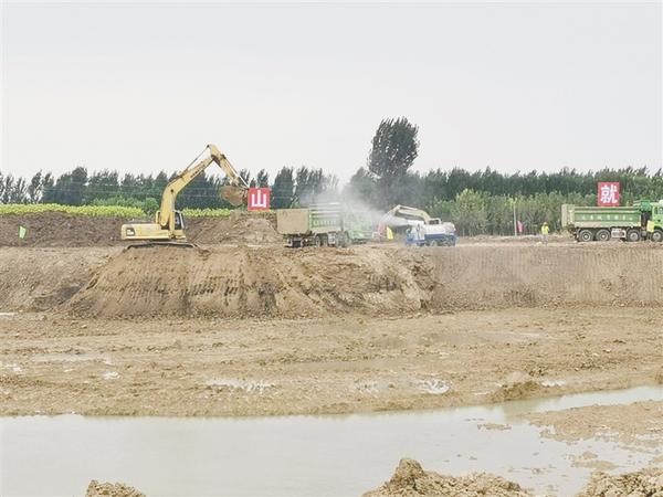 今年以来,扶沟县面对新冠肺炎疫情和经济下行压力,加压奋进、迎难而上,全力推动项目建设。图为扶沟丰收河湿地公园项目施工现场。记者 李一 摄