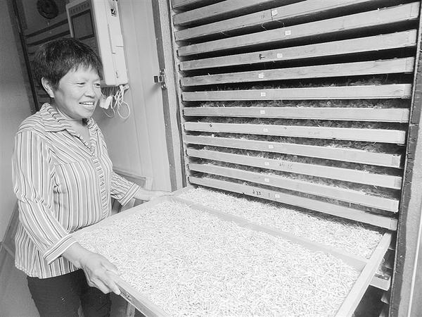 8月17日,商水县巴村镇胡集村“励志脱贫光荣户”贾喜梅正把金银花装入烤箱中烘烤。贾喜梅在县人大代表袁春丽的帮助下种植金银花、药菊花脱贫致富。致富后的贾喜梅通过赊销种苗、免费技术培训、免费烘烤、负责销售等一条龙服务,带动当地群众脱贫致富。乔连军 摄