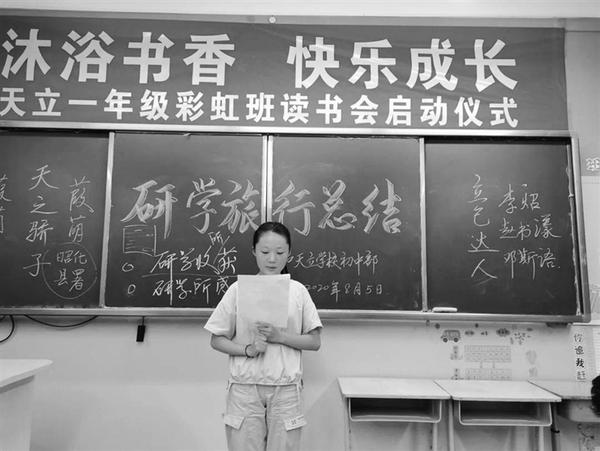 近日,周口天立学校组织学生赴四川开展研学活动,感受巴蜀风土人情及三国文化、蜀道文化、红色文化。 同学们在“行走的课堂”观察、学习、体验,收获了快乐,学到了知识,受到了家长的一致好评。图为学生分享研学心得。