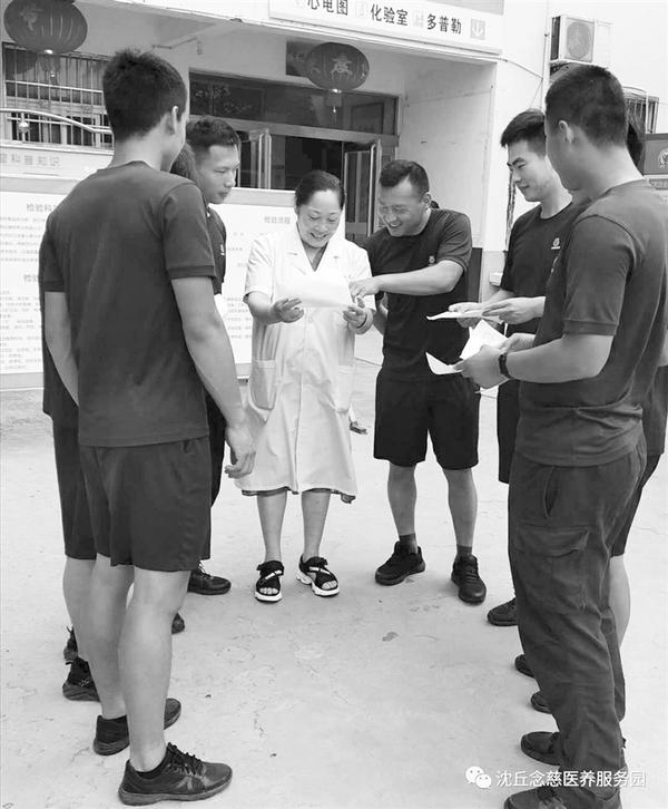 近日,沈丘念慈医院为该县消防大队消防员进行健康体检,并为他们建立健康档案,提供健康咨询服务。通过体检,消防队员及时了解了自己的身体状况,提高了疾病防治能力,以更加饱满的热情投入到工作中。