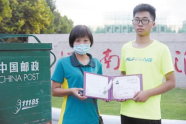 “恭喜你,范秉璋同学,真是咱周口人的骄傲,为你点赞!”8月17日上午,中国邮政集团有限公司周口市淮阳区分公司投递员在仔细核对了收件人的身份证号和准考证号后,将周口市首封来自清华大学的录取通知书送到范秉璋同学手中,向其竖起了大拇指。