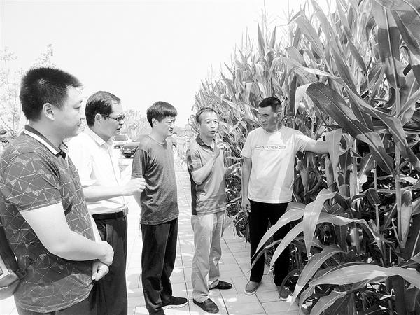 8月19日上午,周口市农业技术推广站的专家在商水县张庄乡万亩高标准农田园区向种粮大户邱守先传授玉米中后期管理技术。该园区种植玉米2万亩,邱守先种植玉米2100亩,目前正是玉米中后期病虫害防治季节,专家们亲自到园区为种粮大户免费提供技术服务,深受种粮大户欢迎。