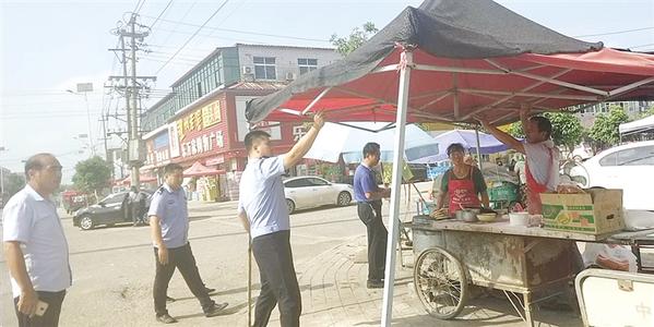 为落实区“创卫”工作要求,连日来,豆门乡党委书记张长银冒酷暑带领班子成员和乡国土所、城建所有关人员等对豆门大街开展整治活动,整治临街店铺私搭乱建、店外经营、乱堆乱放等行为。 记者 侯俊豫 摄