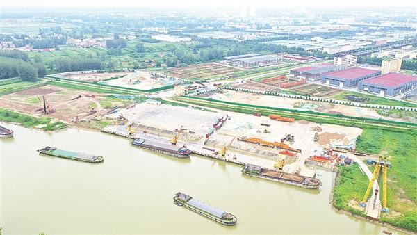 8月20日,在和润集团项城粮油深加工项目工地上,货运船舶已停靠码头,大型器械正在紧张施工。