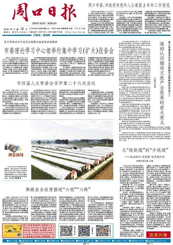 推动文旅产业发展是义不容辞的政治责任。周口是老子故里、羲皇故都。在这片古老的土地上,先贤圣哲曾经肇始了远古文明,播撒了中华优秀传统文化的种子。党的十八大以来,习近平总书记多次强调文化自信,明确指出文化自信是更基本、更深沉、更持久的力量。可以说,发展好文化旅游产业,是我们守住先进文化之根、传承优秀文化之魂、增强文化自信的具体举措。去年9月,习近平总书记在河南考察工作时还指出,以中原文化为中心的黄河文明是中华文明的重要组成部分,是中华民族的根和魂。周口黄泛区是特殊的黄河文化现象,也是黄河文化的重要组成部分。黄泛区见证了新中国成立70多年来的沧桑巨变,是共和国成长发展的一个缩影,展现了黄河文化蕴含的时代价值。必须紧紧抓住重大历史机遇,从坚定文化自信、为民族复兴凝聚强大精神力量的高度,切实承担起保护传承弘扬黄河文化、中原文化、周口文化的历史责任,大力推进文化旅游强市建设,努力为全省文化旅游发展作出周口贡献。