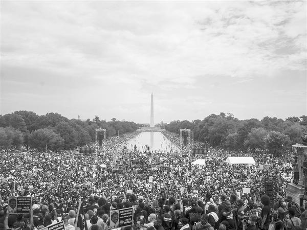 8月28日,人们在美国首都华盛顿林肯纪念堂附近参加反种族歧视和暴力执法示威活动。