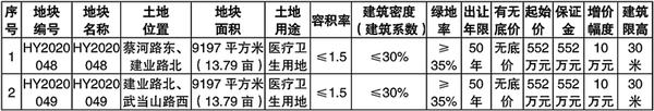 拍卖报价时间为:HY2020048地块: 2020年9月23日10时。HY2020049地块: 2020年9月23日10时10分。