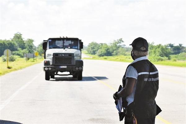 图② 9月1日,工作人员在进出古巴哈瓦那的公路上一处检查点等待检查车辆。由于新冠疫情反弹后出现分散蔓延的特点,古巴哈瓦那从9月1日起,每天19时至次日5时实施宵禁,期间车辆、人员禁止外出。新华社发