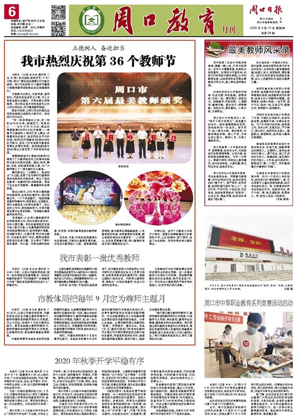 西华县第二实验中学教师韩雪峰:捧着一颗心来,不带半根草去。在平凡中播撒希望,在耕耘中收获喜悦,在清贫中守望未来,在孩子们的笑脸中感受幸福。20年的教育生涯,让她深深体会到敬业奉献是为师之本,爱心责任是师德之魂。